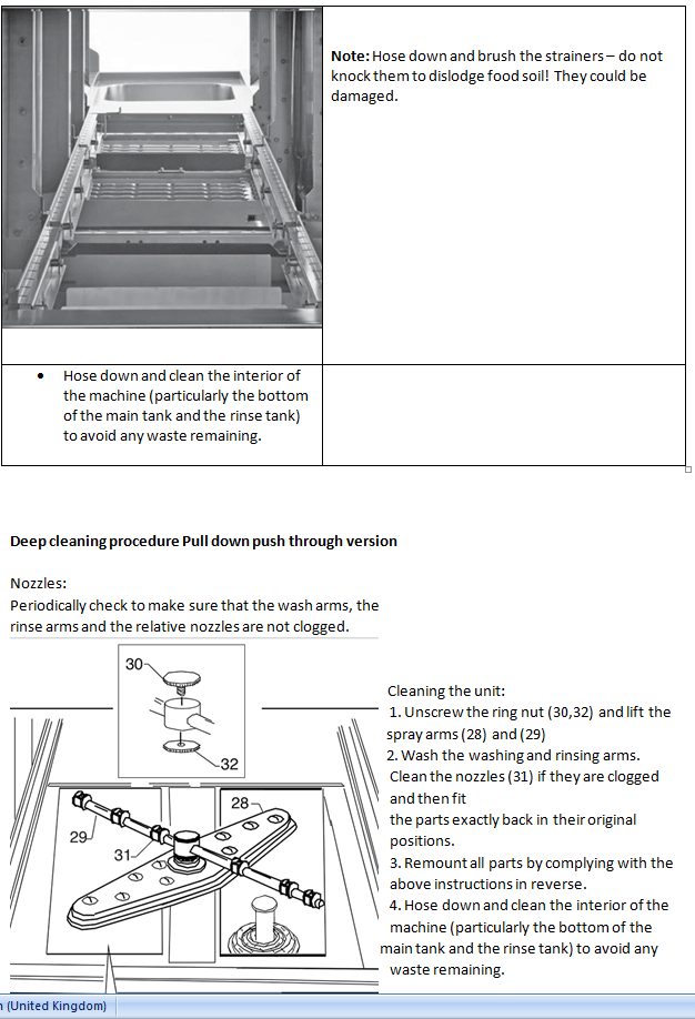 As well as the normal nightly clean down procedure the dishwasher will need a deep clean dependent on use every 2 weeks or once per week depending on volume.