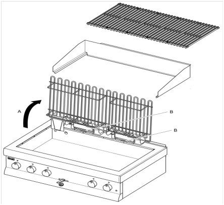To clean the appliance, lift off the cooking grids ensuring they are not dragged across the element (send these to pot wash to clean).